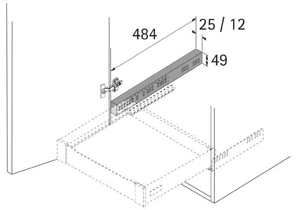 - HETTICH 13952 distanční lišta pro výsuvy, 25x484x49mm, bílá
