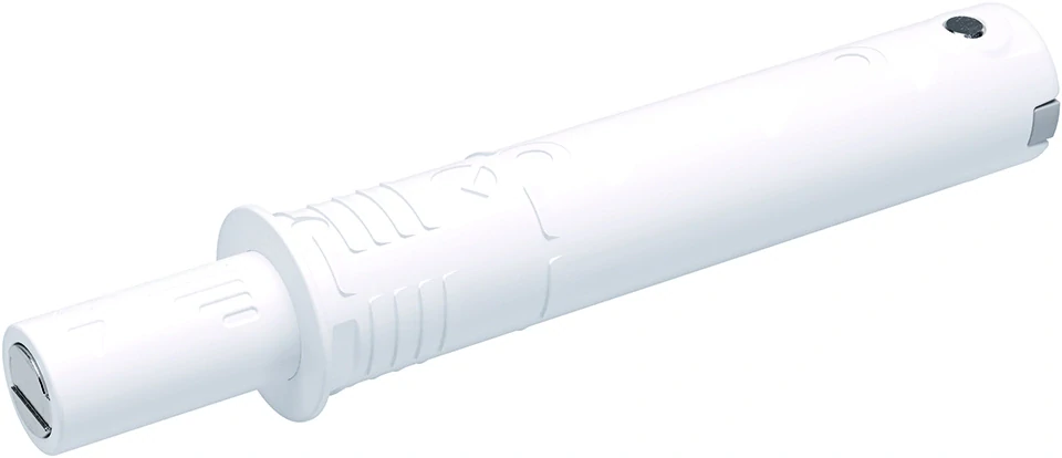 Krátký K-PUSH pístek standardní síly pro bezúchytkové otevírání nábytkových dvířek. Vhodné pro použití se závěsy bez zavírací pružiny (push/tip-on). Délka vysunutí pístu 14mm. Barva viz název produtku. Určeno pro zavrtání do hrany (vrtání D10x50mm).