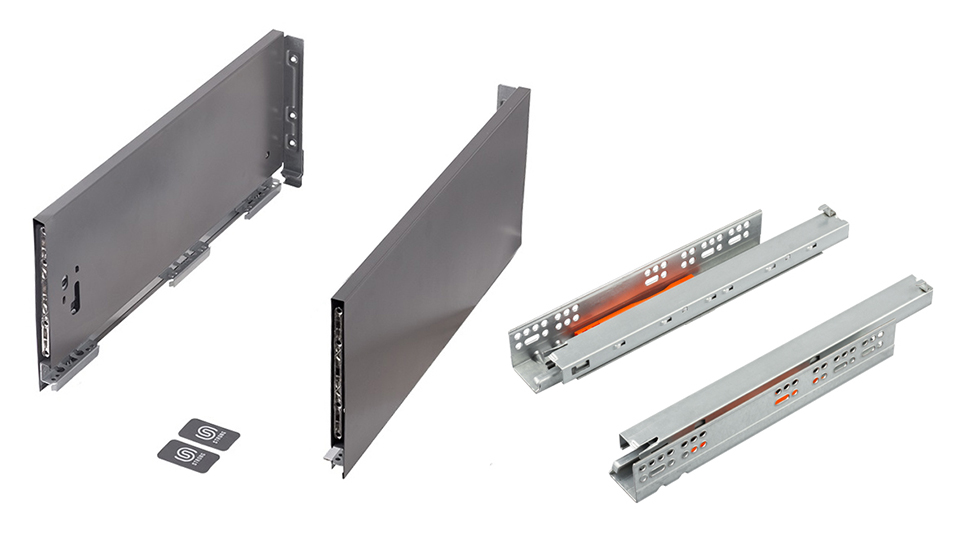 Kompletní sada kování pro sestavení zásuvky StrongMax 18 s bezúchytkovým otevíráním "PUSH". Nutno doplnit přířezy dna/zad (18mm) a čelo.
