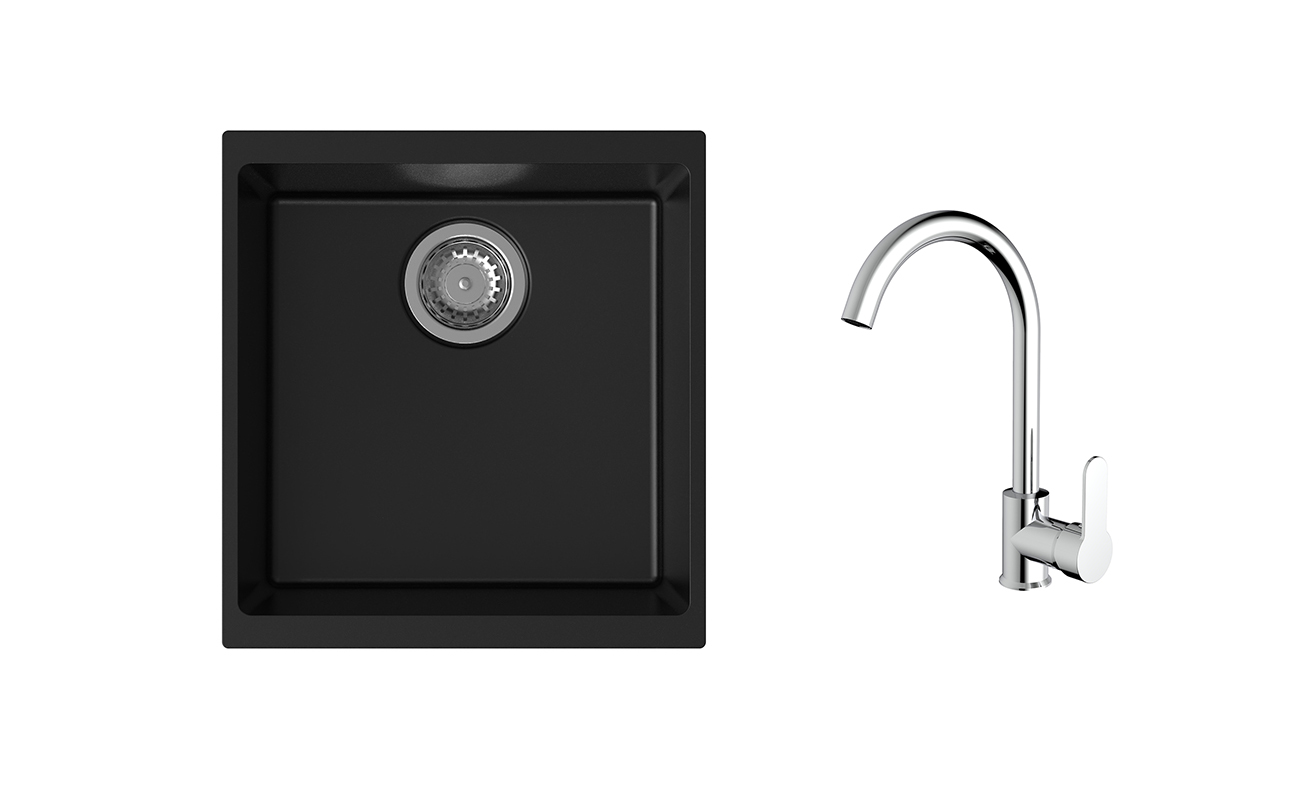 K-StrongSinks S3 Set dřez Hron 430x460mm granit černá + Baterie Seina chromSkladem 3 sada5 988 Kč/ sada4 948,8 Kč bez DPH
