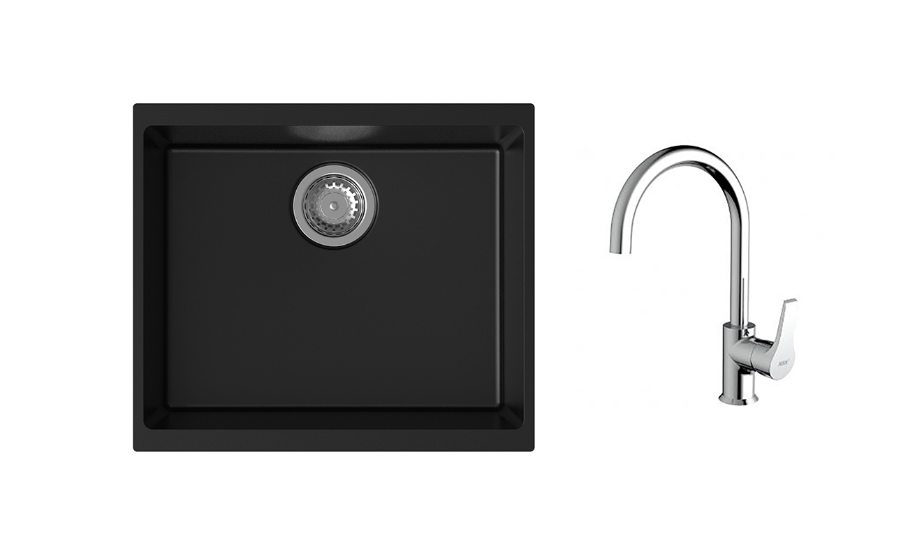 K-StrongSinks S3 Set dřez Hron 530x460mm granit černá + Baterie Rhona chromSkladem 40 sada6 712 Kč/ sada5 547,1 Kč bez DPH