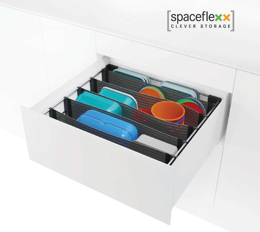 Systém pro vnitřní organizaci zásuvek. Díky elastickým přepážkám z patentovaného materiálu nesttex je přehlednost a organizace zásuvek hračkou.