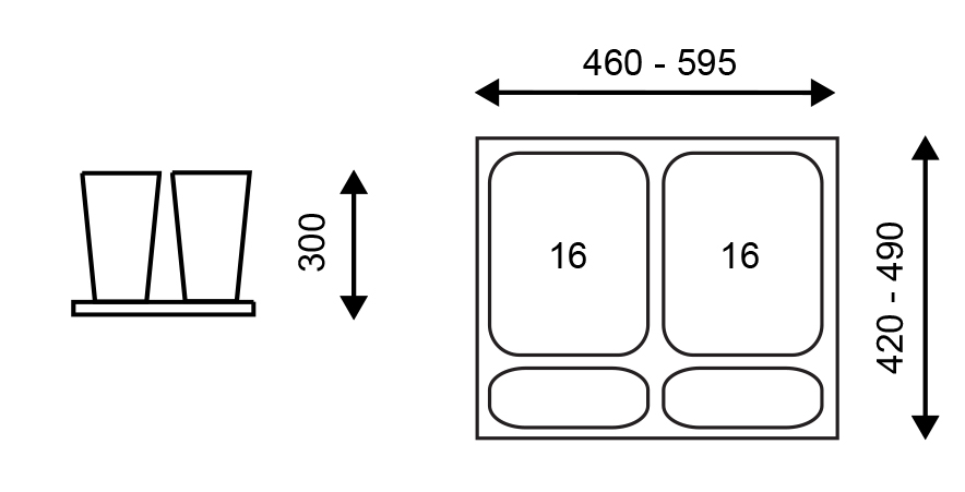 - StrongBins sorter 2x16 l vložený do zásuvky 600 mm, antracit